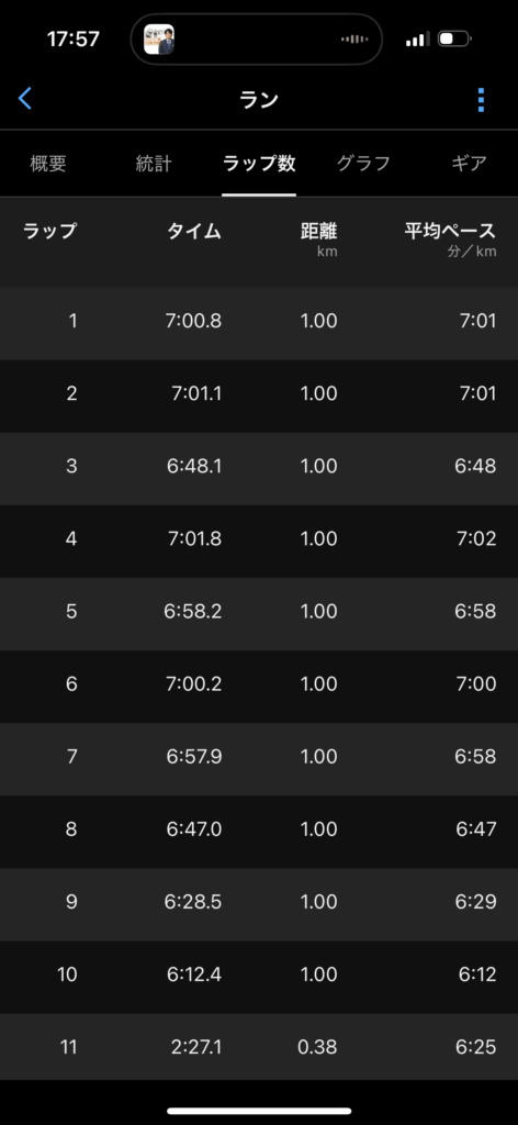 走り出して6キロくらいまでダルいダルい😅ここで上手く乗っていけるとしばらく走れるんですがメンタルがダメになると「やーめた!」
